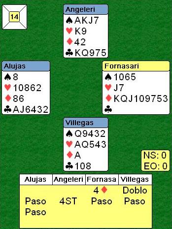 y Villegas dobló. Alujas pasó y Angeleri dijo 4NT. Villegas