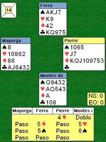 En la otra mesa la subasta comenzó de la misma manera pero Ferro en Norte eligió un canto para asegurarse que su compañero no le pasara…un cue-bid de 5