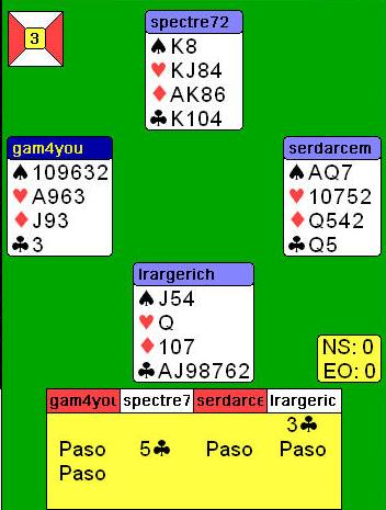 lrargerich: Modern bridge 101, 3 no pasadores y tenemos 10 puntos...Creo que 4