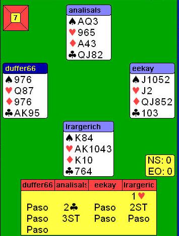 lrargerich: El canto de Norte debería haber sido 3NT, con 7 bazas de trébol y 2