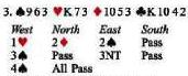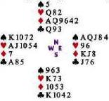 Cuando sus opps paran en 2NT, ellos muestran no tener fuerza extra, y que el declarante debera trabajar para cumplir, especialmente si sus palos largos no estan bien distribuidos. UD tiene los corazones y Norte esta marcado con 4 cartas de espadas. Evite una salida agresiva, ya que podria regalara una baza. Si UD defiende pasivo, el contrato puede morir de causas naturales cuando el declarante se quede sin bazas. Salga del 9.