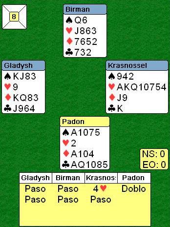 Despues de dos pasos Krasnossel jugador del equipo Real abrio su mano de 4