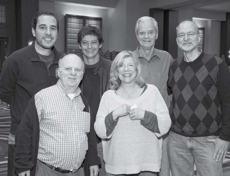 The winners of the North American Swiss Teams: Steve Robinson and team captain Rose Meltzer. In the rear: Carlos Pellegrini, Diego Brenner, John Mohan and Peter Boyd.