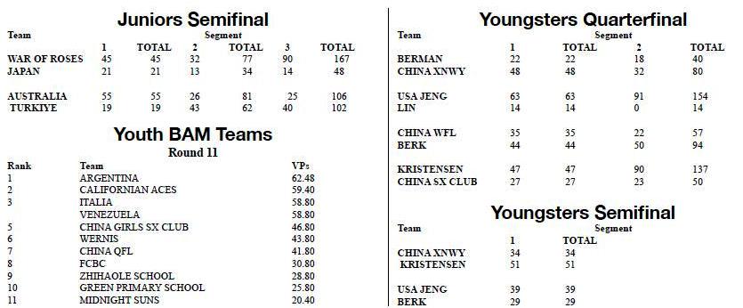Knockout Formats: In the Junior Knockout, there will be one-day, 48-board semifinals and final with no carryovers.
