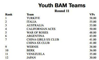Saturday 10th: BAM Results: