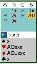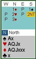 . I can’t pass, and I wouldn’t want to because the opponents probably have more trump than we do. So I bid the artificial 2N, hoping to hear 3