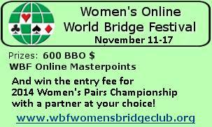 Please tell your friends … Anna Maria, the Chairman of the WBF Women’s Committee and all the Committee members join me in hoping that you will come and play in the Festival and will find it fun and enjoyable!