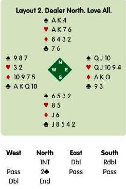 , but whenever you have described your hand neatly, you should trust your partner to find the right call: West knows East is strong. South passes 2