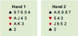 call before, it should double for take out rather than overcall. Conversely Hand 2, although weak, should overcall a 1
