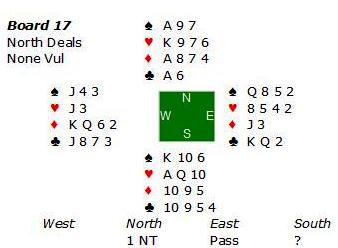 Put yourself in the South chair. Your partner opens 1NT 15-17, and you have to decide whether to invite game or whether to bid 3NT al by yourself? Click Here to continue reading