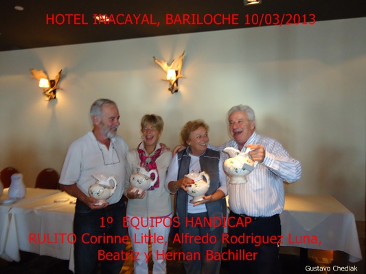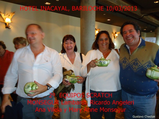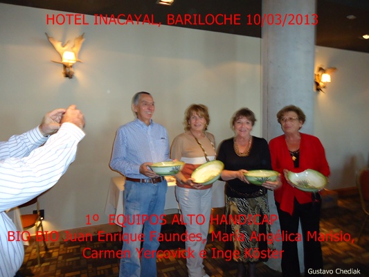 En Handicap el primer puesto fue para Laura Pecoretti y Edith Bustingorry, mientras que el segundo quedó en poder de Alicia Pari y Rommy Doyenaard. Alto Handicap fue para Sam y Margerite Amer (USA), seguidos por Lisando López y Justo Epifanio.