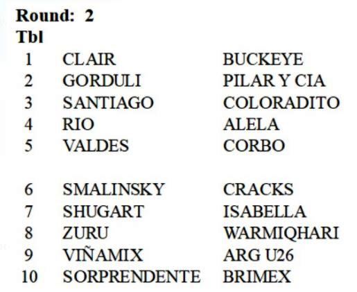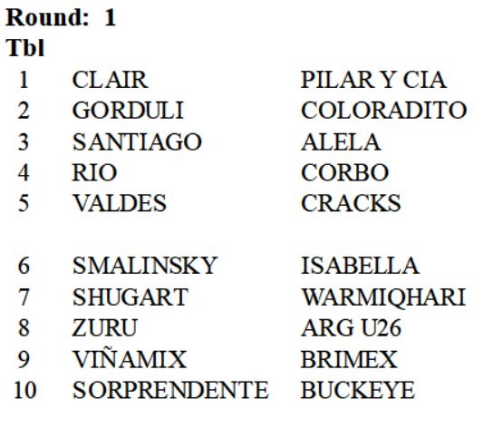 Torneo Suizo Ruedas Uno y Dos: