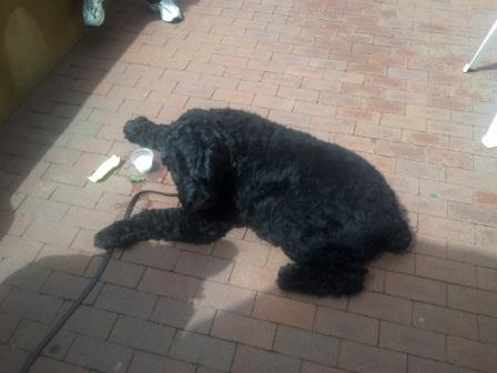 Anna, la perra del equipo se queja cuando no la alimentan, y con sus más de 50 kilos, no queremos irritarla. Así que primero pasamos por Petsmart para asegurar que su despensa esté llena. En este viaje ella ha estado cojeando, asi que visitamos a su veterinario. Aunque ella es un animal de servicio, tiene mucha paciencia pero que le corten las uñas es traumático para todos los involucrados, siempre deja el establecimiento con una rabieta.