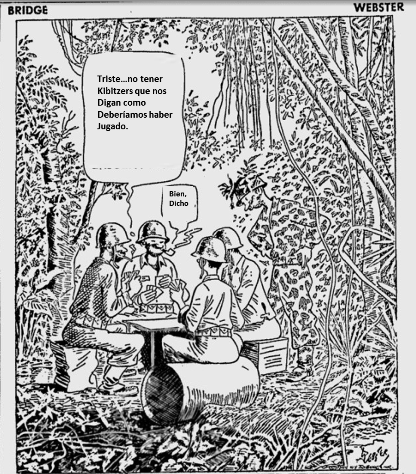 Sur correctamente aflojo la salida de la dama de corazon y su continuación, fallando recién la tercera vuelta. Una oportunidad desaparecida. Oeste no tenia el as de corazon, pero Este tampoco lo dejaba ir temprano… Los triunfos fueron quitados en tres rondas. Sur ahora jugó el rey y un segundo diamante, haciendo la finesse al valet. Este tomó con su dama y volvió el as de corazon.