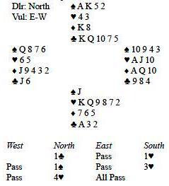 Comentario de la Subasta: El salto en la redeclaracion de Sur de 3 es invitante. Piense en él como que muestra u palo sexto razonablet con 9-11 puntos honores.