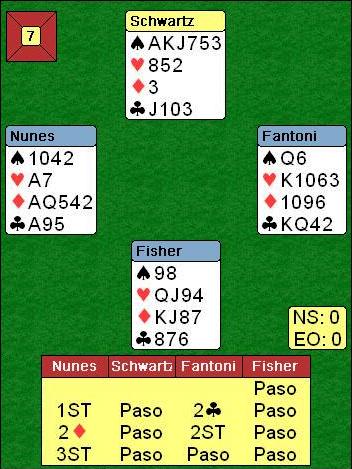 Es difícil de decir, hubo muchas tablillas lindas, pero aun recuerdo la horrible sensación que sentí después de salir del 7 de espadas de AKJ753 contra 3NT (jugábamos contra Fantoni-Nunes) y el muerto se tendió con Q6 de espadas, por suerte el declarante, en la baza dos jugo una espada (tratando de forzar algún tipo de jugada de squezze imagino) así que pude hacer rápidamente mis 5 bazas de espadas para una abajo, por cómo estaban las cartas el declarante hubiera podido ganar la mano si jugaba la finesse de diamante que salía, y después jugaba los tréboles que estaban 3-3.
